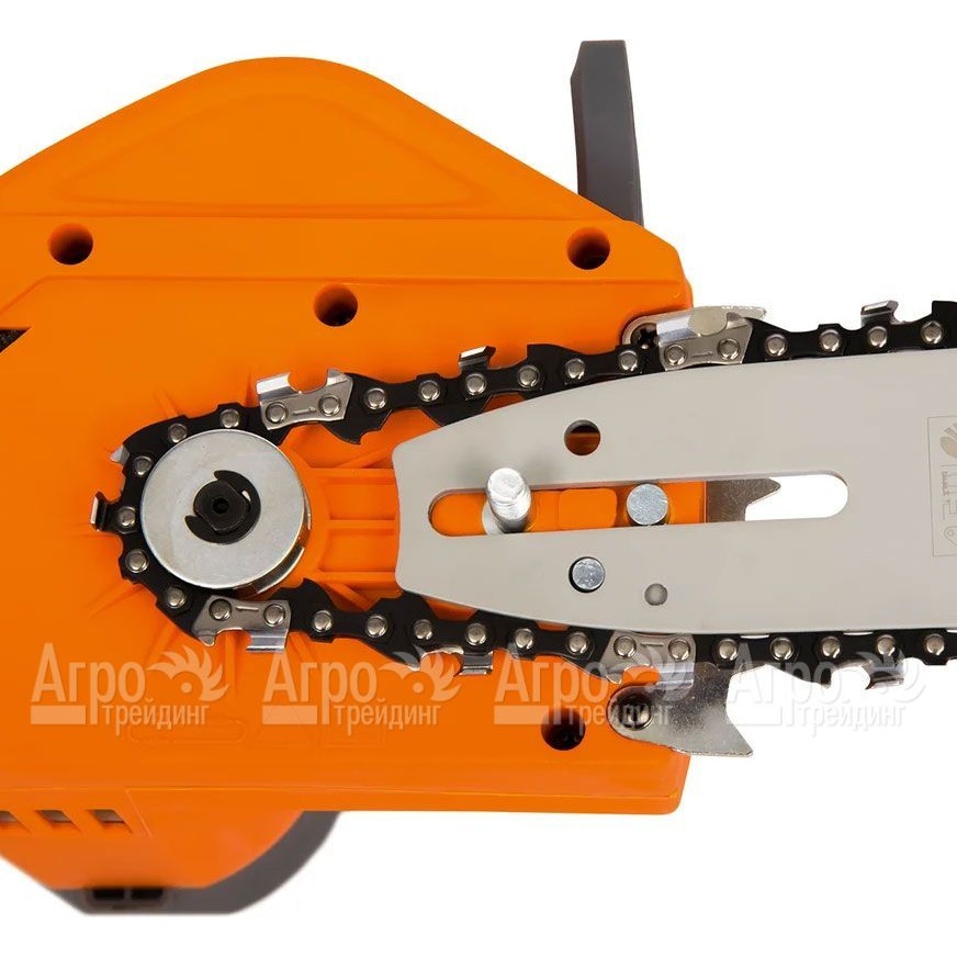 Дополнительная информация: металлический зубчатый упор, индикатор уровня цепного масла, защита от случайного включения, моментальная остановка цепи